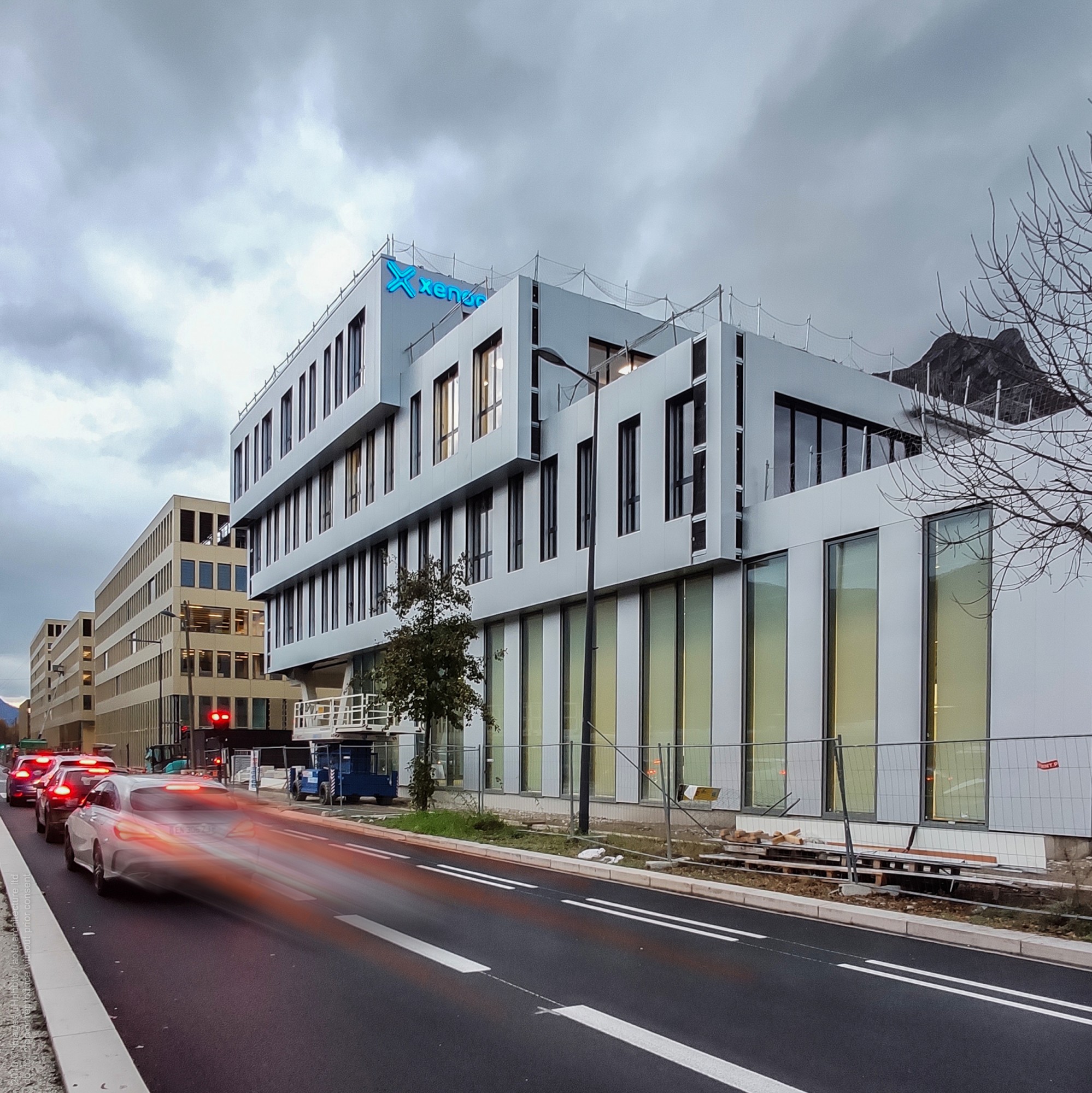 Développé pour Xenocs par GSE, ce bâtiment de 5 500 m² réparti sur 4 étages accueille le siège social du groupe, des ateliers de production, un show-room et des salles propres. Chaque étage bénéficie de larges terrasses et de toitures végétalisées. Le dernier étage accueille des salles de réunion partagées avec d’autres locataires.