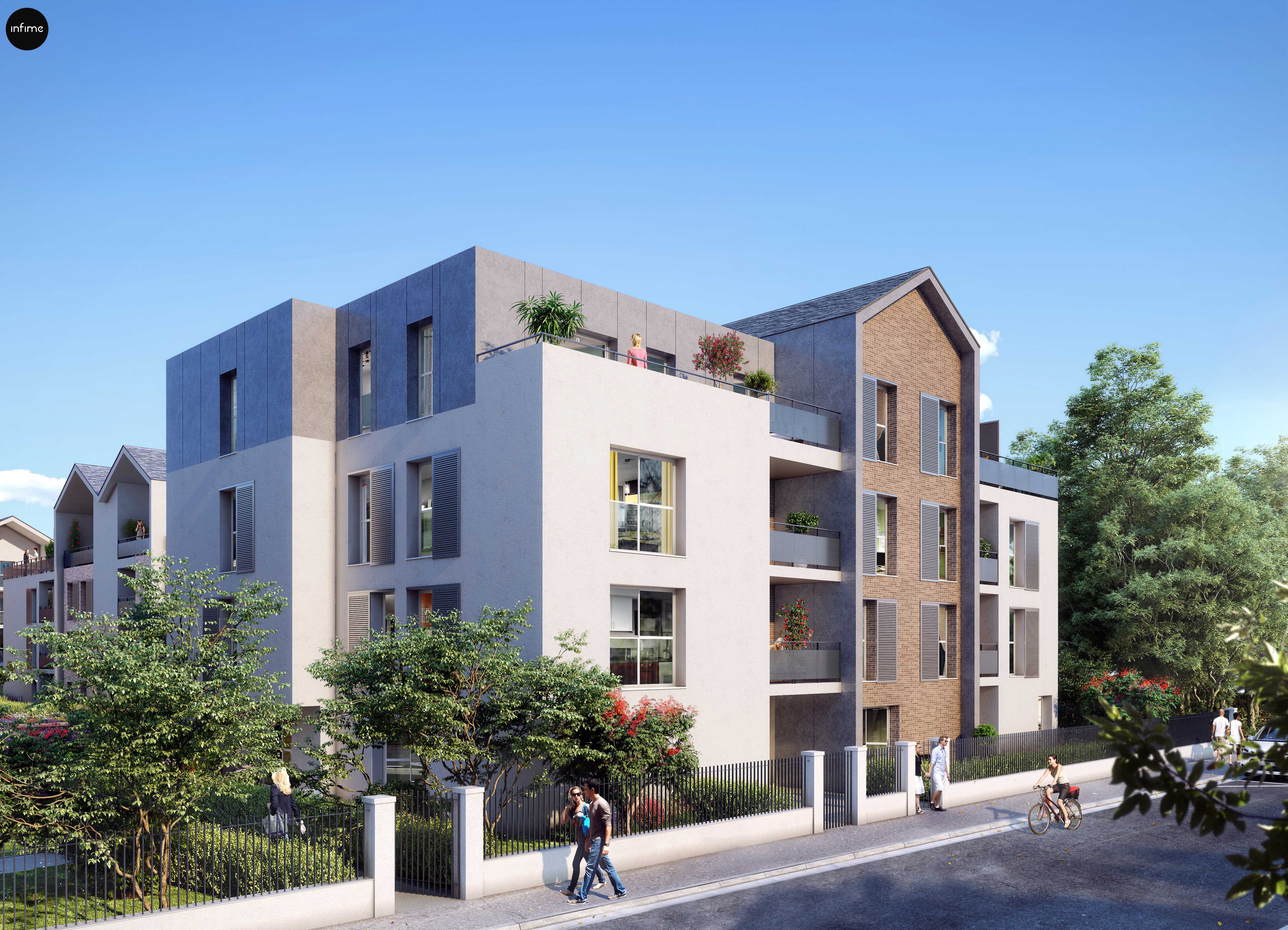 Afin d’intégrer au mieux le projet dans son environnement, la résidence bénéficie d’un espace vert central privatif, et les volumes bâtis ont été fractionnés pour rappeler le rythme d’habitations intermédiaires. Les toitures en ardoise couvrant une partie des constructions, et les toits-terrasses privilégiés pour les autres répondent au même parti-pris. Ces éléments permettent d’éviter un effet de « grandes masses », aujourd’hui à l’opposé des attentes des acquéreurs.