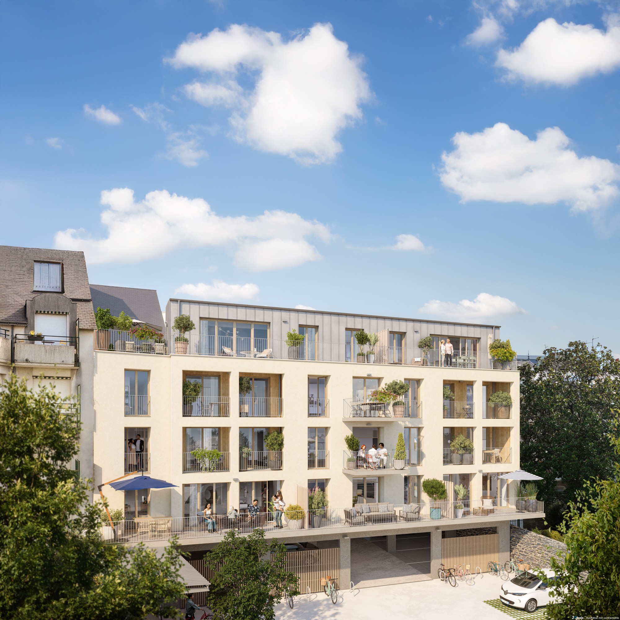 Des loggias et terrasses prolongent les espaces de vie vers un cœur d’îlot arboré, offrant un véritable écrin de verdure aux futurs habitants.
