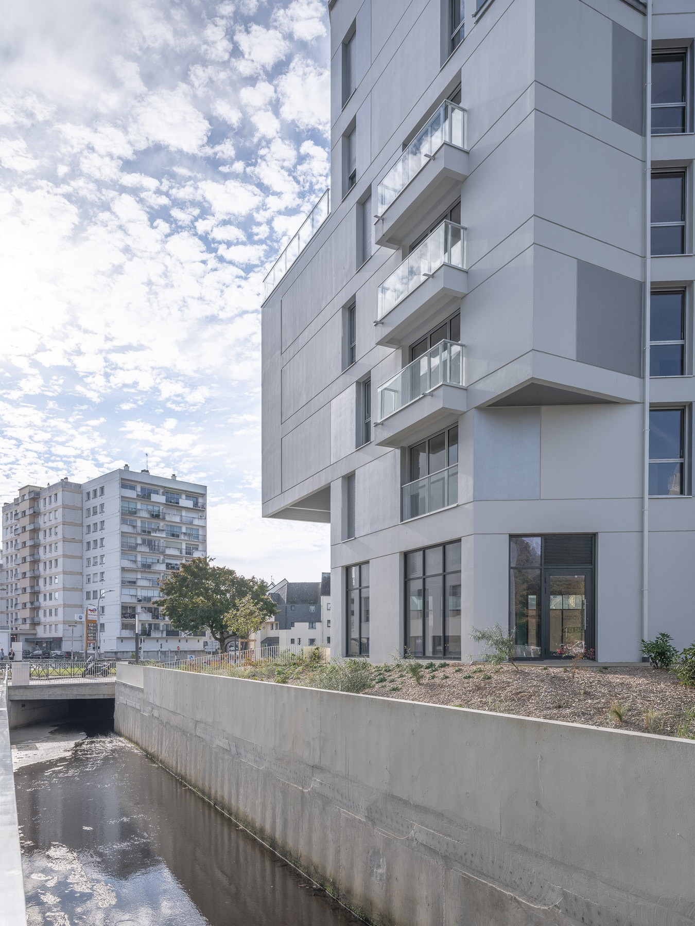 Le projet comporte la réalisation de 3 bâtiments neufs et la restructuration de la tour pour la création de 173 logements et 650 m² de locaux d’activités. Imaginée avec Latitude Architectes, la résidence s’articule autour d’un cœur d’îlot paysager où le ruisseau du Rohan, jusqu’alors enfoui, a été partiellement remis à ciel ouvert. Véritable poumon vert et lien urbain, cette promenade redonne une place à la nature dans la ville et offre un nouvel espace de vie aux habitants du quartier.