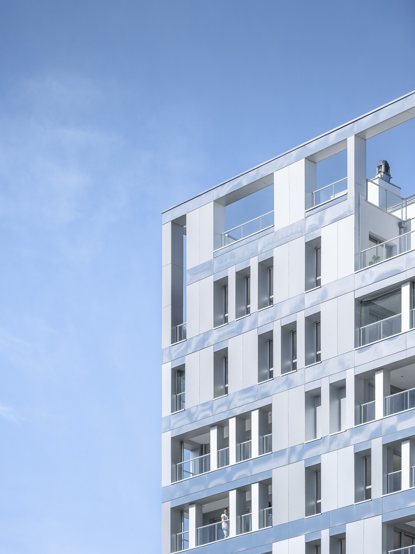 La tour réhabilitée, bâtiment le plus emblématique du projet, s’élève sur 12 étages et accueille 54 logements. Les trois autres bâtiments, de 5 à 6 étages, proposent des typologies allant du T2 au T7 duplex. Les logements bénéficient de prestations et finitions de qualités : meuble vasque sur mesure, fermeture centralisée des volets roulants, sanitaires suspendus, etc…