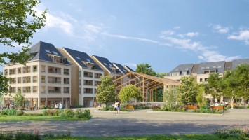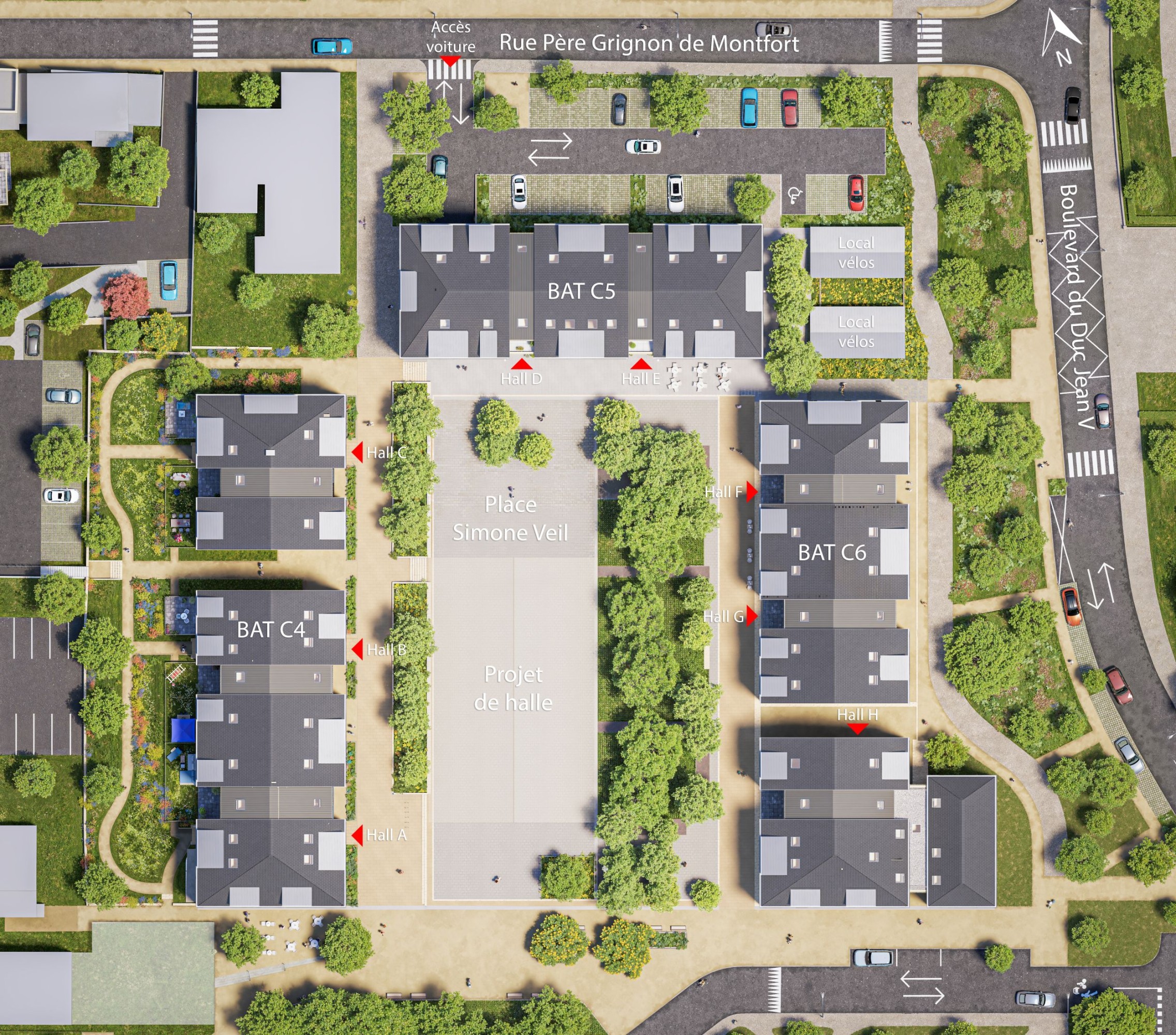 Cette écriture architecturale, à la fois contemporaine et ancrée dans le territoire, compose un ensemble harmonieux autour de la future place Simone Veil, animée par une halle de marché, des terrasses et des commerces.