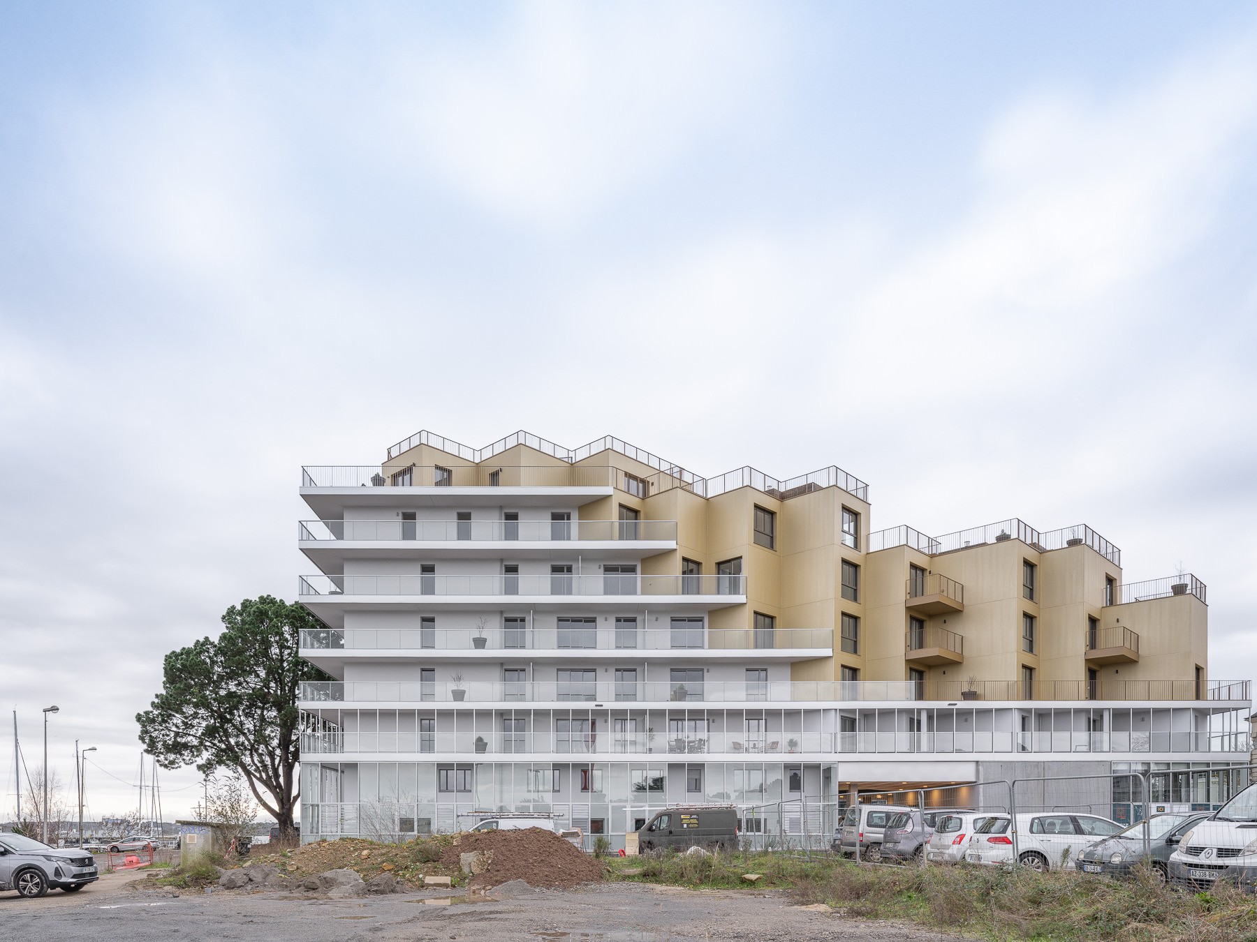 Fiche technique : Promoteur : Groupe Giboire Bailleur social : Morbihan Habitat Architecte : Hamonic + Masson & Associés Adresse : Quai du Péristyle, Lorient Nombre de logements : 67 · Accession libre : 48 (3 T1bis, 6 T2, 17 T3, 14 T4, 8 T5) · Logements sociaux : 6 (2 T2, 4 T3) · Logements ULS : 13 (5 T1bis, 8 T3) Stationnement : 61 places (53 en sous-sol) Démarrage des travaux : septembre 2023 Livraison : 18 décembre 2025 |