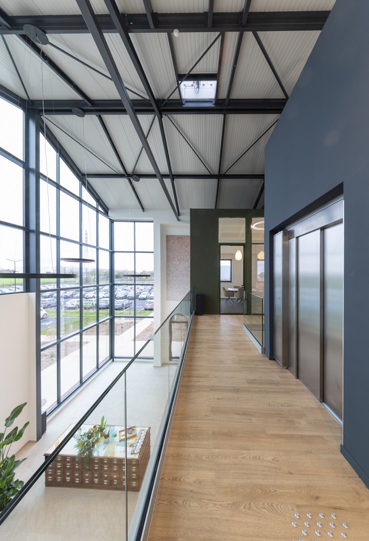 Les espaces intérieurs et extérieurs ont été pensés pour le confort des collaborateurs, avec des patios végétalisés, un parcours de santé et des espaces de détente. L’ensemble du bâtiment bénéficie d’un suivi numérique via le BIM, garantissant une gestion optimale tout au long de son cycle de vie.
