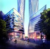 Les Tours s'élèveront au-dessus d'un vaste socle aménagé en place publique, bordée de magasins, de restaurants et de cafés.